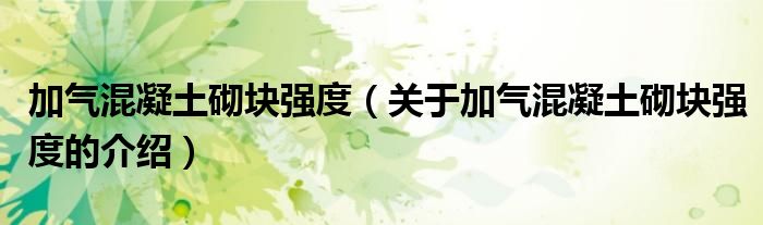 大家好,小新来为大家解答以上的问题。加气混凝土砌块强度,关于加气混凝土砌块强度的介绍很多人还不知道,现在让我们一起来看看吧!