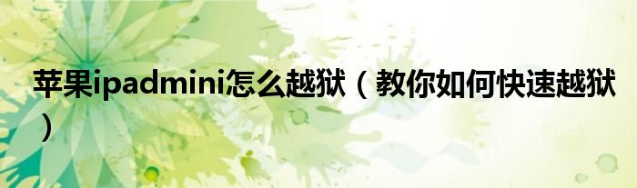 大家好,伊人来为大家解答以上问题。苹果ipadmini怎么越狱,教你如何快速越狱很多人还不知道,现在让我们一起来看看吧!
