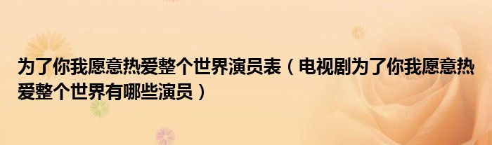 大家好,伊人来为大家解答以上问题。为了你我愿意热爱整个世界演员表,电视剧为了你我愿意热爱整个世界有哪些演员很多人还不知道,现在让我们一起来看看吧!