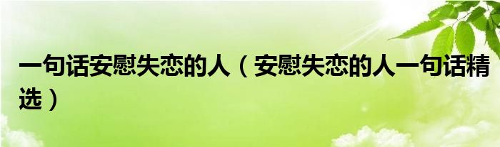 大家好,伊人来为大家解答以上问题。一句话安慰失恋的人,安慰失恋的人一句话精选很多人还不知道,现在让我们一起来看看吧!