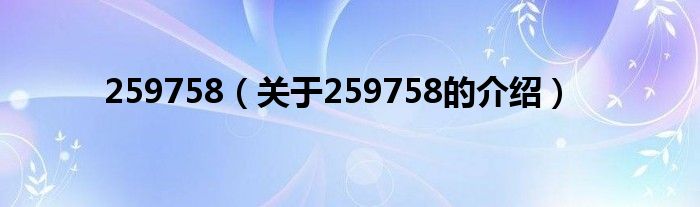 大家好,小新来为大家解答以上的问题。259758,关于259758的介绍很多人还不知道,现在让我们一起来看看吧!
