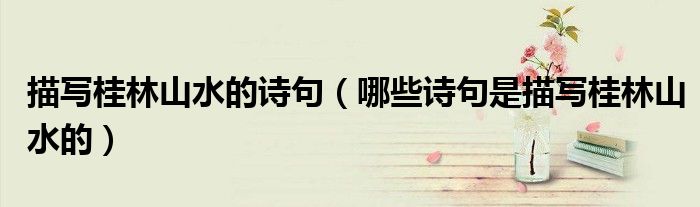 大家好,伊人来为大家解答以上问题。描写桂林山水的诗句,哪些诗句是描写桂林山水的很多人还不知道,现在让我们一起来看看吧!