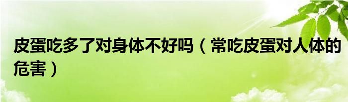 大家好,伊人来为大家解答以上问题。皮蛋吃多了对身体不好吗,常吃皮蛋对人体的危害很多人还不知道,现在让我们一起来看看吧!