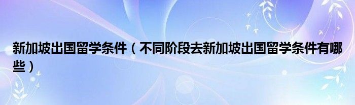 大家好,伊人来为大家解答以上问题。新加坡出国留学条件,不同阶段去新加坡出国留学条件有哪些很多人还不知道,现在让我们一起来看看吧!