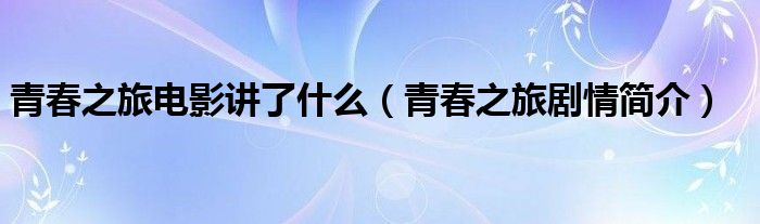 大家好,伊人来为大家解答以上问题。青春之旅电影讲了什么,青春之旅剧情简介很多人还不知道,现在让我们一起来看看吧!
