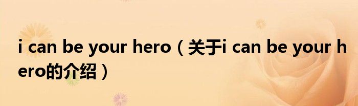 大家好,小新来为大家解答以上的问题。i can be your hero,关于i can be your hero的介绍很多人还不知道,现在让我们一起来看看吧!