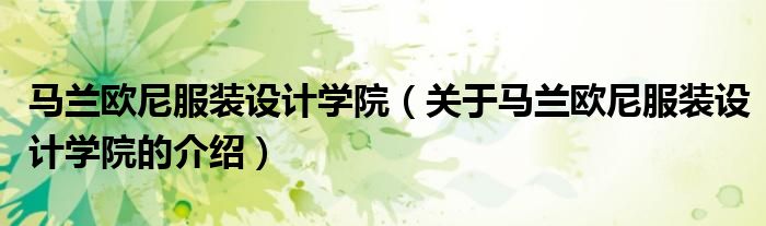 大家好,小新来为大家解答以上的问题。马兰欧尼服装设计学院,关于马兰欧尼服装设计学院的介绍很多人还不知道,现在让我们一起来看看吧!