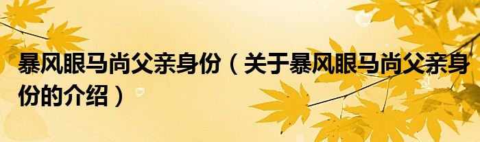 大家好,小新来为大家解答以上的问题。暴风眼马尚父亲身份,关于暴风眼马尚父亲身份的介绍很多人还不知道,现在让我们一起来看看吧!