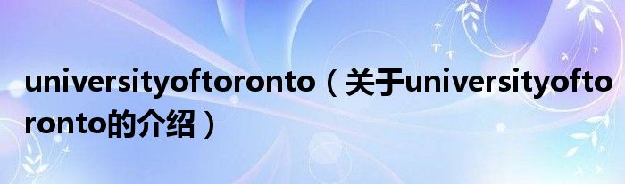 大家好,小新来为大家解答以上的问题。universityoftoronto,关于universityoftoronto的介绍很多人还不知道,现在让我们一起来看看吧!