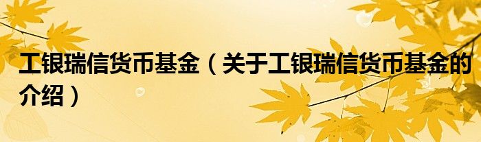 大家好,小新来为大家解答以上的问题。工银瑞信货币基金,关于工银瑞信货币基金的介绍很多人还不知道,现在让我们一起来看看吧!