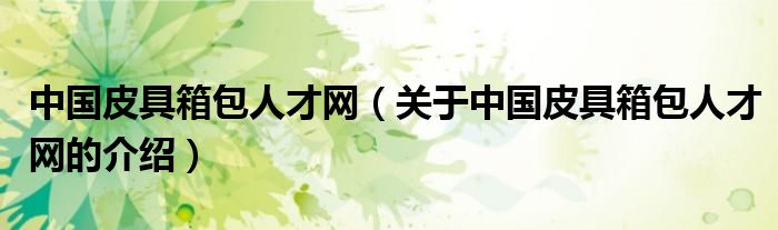 大家好,小新来为大家解答以上的问题。中国皮具箱包人才网,关于中国皮具箱包人才网的介绍很多人还不知道,现在让我们一起来看看吧!