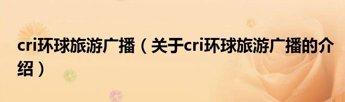 大家好,小新来为大家解答以上的问题。cri环球旅游广播,关于cri环球旅游广播的介绍很多人还不知道,现在让我们一起来看看吧!