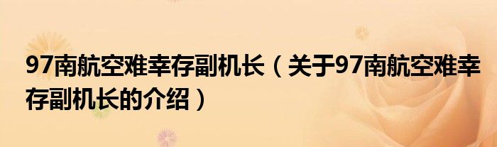 大家好,小新来为大家解答以上的问题。97南航空难幸存副机长,关于97南航空难幸存副机长的介绍很多人还不知道,现在让我们一起来看看吧!