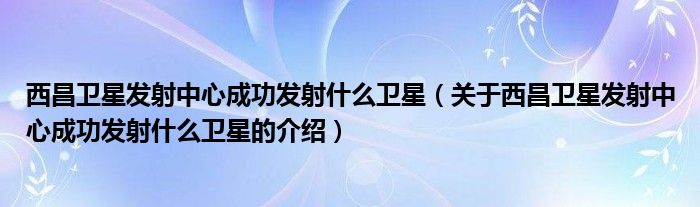 大家好,小新来为大家解答以上的问题。西昌卫星发射中心成功发射什么卫星,关于西昌卫星发射中心成功发射什么卫星的介绍很多人还不知道,现在让我们一起来看看吧!