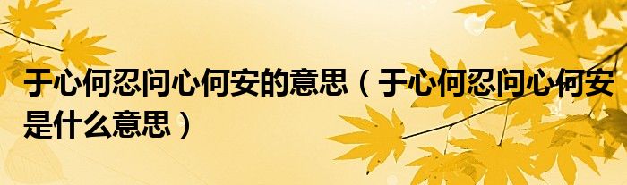 大家好,伊人来为大家解答以上问题。于心何忍问心何安的意思,于心何忍问心何安是什么意思很多人还不知道,现在让我们一起来看看吧!