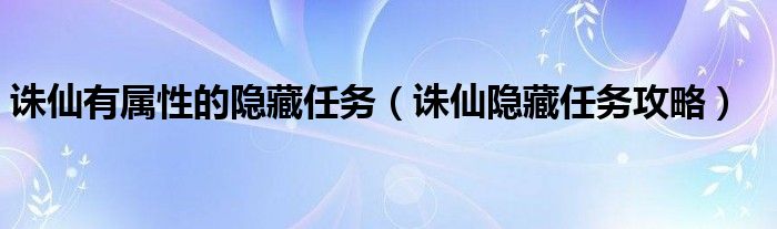 大家好,伊人来为大家解答以上问题。诛仙有属性的隐藏任务,诛仙隐藏任务攻略很多人还不知道,现在让我们一起来看看吧!