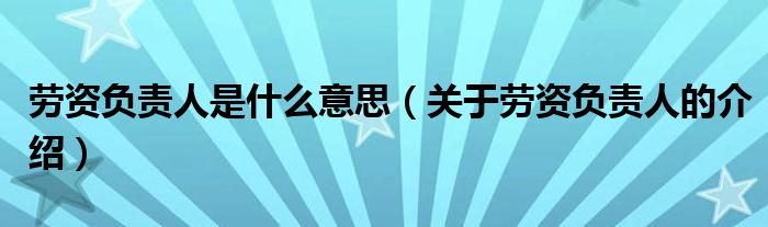 大家好,伊人来为大家解答以上问题。劳资负责人是什么意思,关于劳资负责人的介绍很多人还不知道,现在让我们一起来看看吧!
