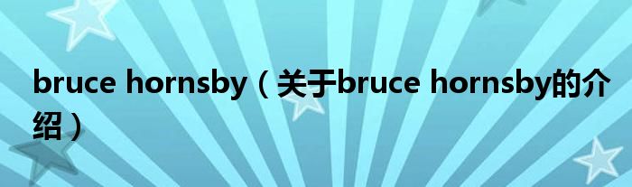 大家好,小新来为大家解答以上的问题。bruce hornsby,关于bruce hornsby的介绍很多人还不知道,现在让我们一起来看看吧!
