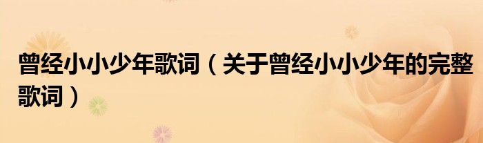 大家好,伊人来为大家解答以上问题。曾经小小少年歌词,关于曾经小小少年的完整歌词很多人还不知道,现在让我们一起来看看吧!
