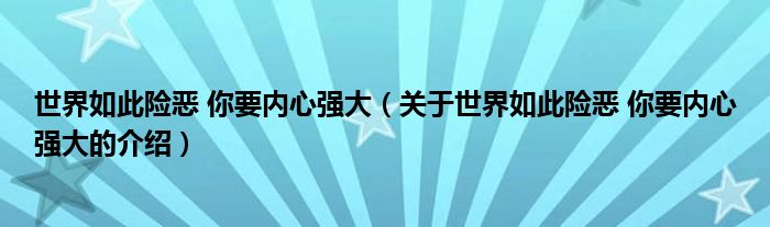大家好,小新来为大家解答以上的问题。世界如此险恶 你要内心强大,关于世界如此险恶 你要内心强大的介绍很多人还不知道,现在让我们一起来看看吧!