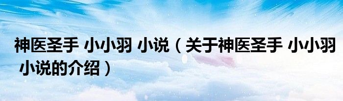 大家好,小新来为大家解答以上的问题。神医圣手 小小羽 小说,关于神医圣手 小小羽 小说的介绍很多人还不知道,现在让我们一起来看看吧!