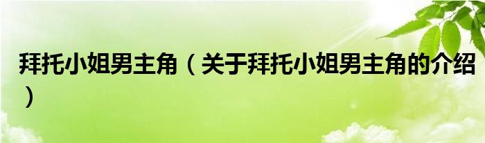 大家好,小新来为大家解答以上的问题。拜托小姐男主角,关于拜托小姐男主角的介绍很多人还不知道,现在让我们一起来看看吧!