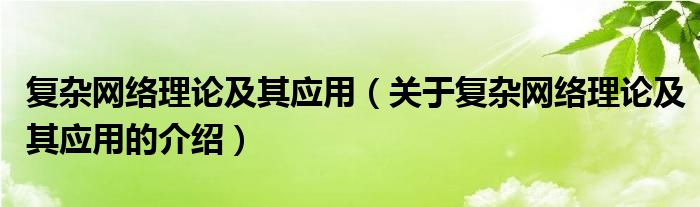 大家好,小新来为大家解答以上的问题。复杂网络理论及其应用,关于复杂网络理论及其应用的介绍很多人还不知道,现在让我们一起来看看吧!