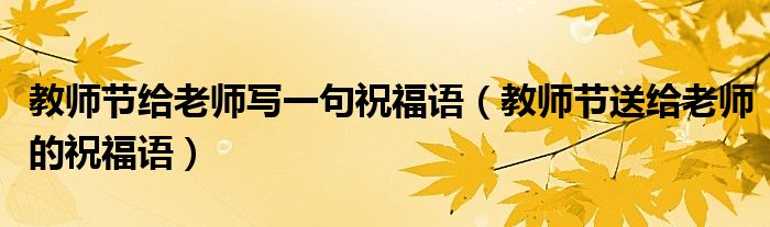 大家好,伊人来为大家解答以上问题。教师节给老师写一句祝福语,教师节送给老师的祝福语很多人还不知道,现在让我们一起来看看吧!