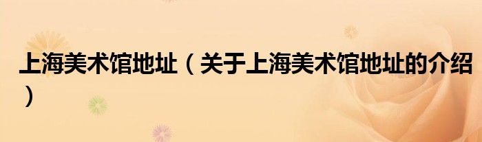 大家好,小新来为大家解答以上的问题。上海美术馆地址,关于上海美术馆地址的介绍很多人还不知道,现在让我们一起来看看吧!