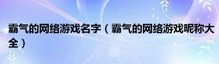 大家好,伊人来为大家解答以上问题。霸气的网络游戏名字,霸气的网络游戏昵称大全很多人还不知道,现在让我们一起来看看吧!