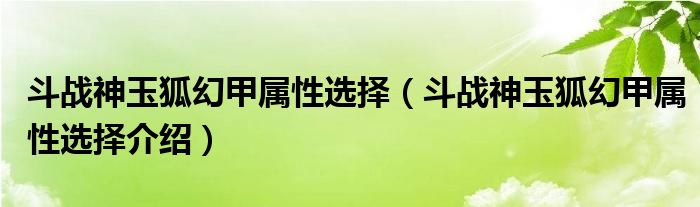 大家好,伊人来为大家解答以上问题。斗战神玉狐幻甲属性选择,斗战神玉狐幻甲属性选择介绍很多人还不知道,现在让我们一起来看看吧!