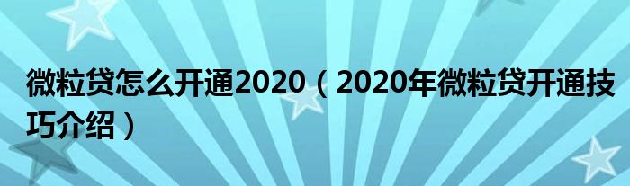 大家好,伊人来为大家解答以上问题。微粒贷怎么开通2020,2020年微粒贷开通技巧介绍很多人还不知道,现在让我们一起来看看吧!