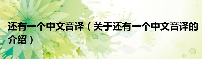 大家好,小新来为大家解答以上的问题。还有一个中文音译,关于还有一个中文音译的介绍很多人还不知道,现在让我们一起来看看吧!