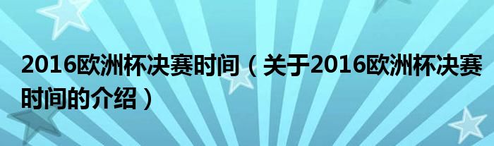 大家好,小新来为大家解答以上的问题。2016欧洲杯决赛时间,关于2016欧洲杯决赛时间的介绍很多人还不知道,现在让我们一起来看看吧!