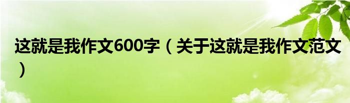 大家好,伊人来为大家解答以上问题。这就是我作文600字,关于这就是我作文范文很多人还不知道,现在让我们一起来看看吧!