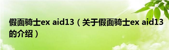 大家好,小新来为大家解答以上的问题。假面骑士ex aid13,关于假面骑士ex aid13的介绍很多人还不知道,现在让我们一起来看看吧!