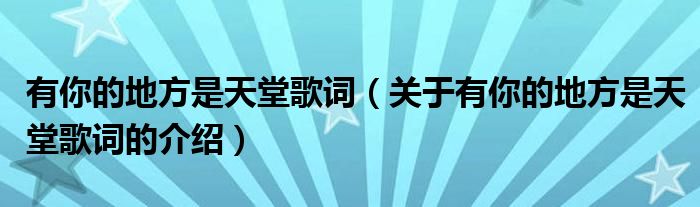 大家好,小新来为大家解答以上的问题。有你的地方是天堂歌词,关于有你的地方是天堂歌词的介绍很多人还不知道,现在让我们一起来看看吧!