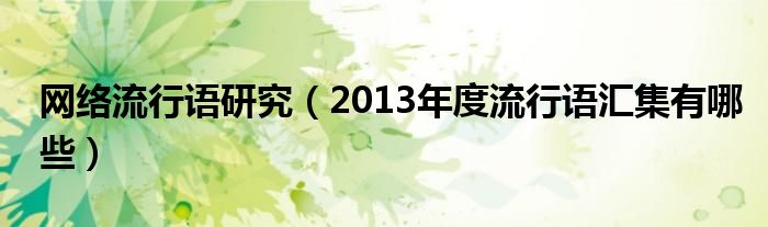 大家好,伊人来为大家解答以上问题。网络流行语研究,2013年度流行语汇集有哪些很多人还不知道,现在让我们一起来看看吧!