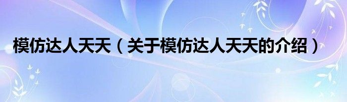 大家好,小新来为大家解答以上的问题。模仿达人天天,关于模仿达人天天的介绍很多人还不知道,现在让我们一起来看看吧!