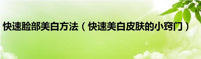 大家好,伊人来为大家解答以上问题。快速脸部美白方法,快速美白皮肤的小窍门很多人还不知道,现在让我们一起来看看吧!