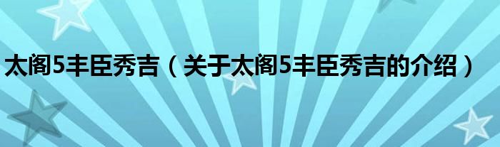 大家好,小新来为大家解答以上的问题。太阁5丰臣秀吉,关于太阁5丰臣秀吉的介绍很多人还不知道,现在让我们一起来看看吧!