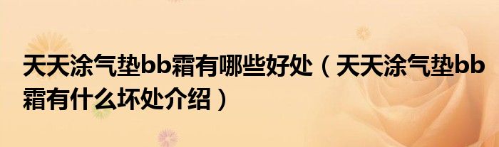 1、每天使用气垫bb霜,有利也有弊。Bb霜可以起到非常好的美化皮肤的作用。但是含有化学成分,经常使用会刺激皮肤。