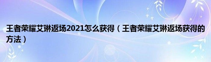 大家好,伊人来为大家解答以上问题。王者荣耀艾琳返场2021怎么获得,王者荣耀艾琳返场获得的方法很多人还不知道,现在让我们一起来看看吧!