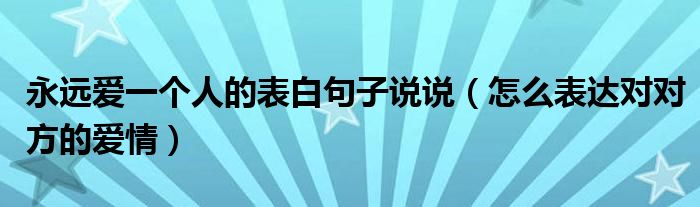 大家好,伊人来为大家解答以上问题。永远爱一个人的表白句子说说,怎么表达对对方的爱情很多人还不知道,现在让我们一起来看看吧!