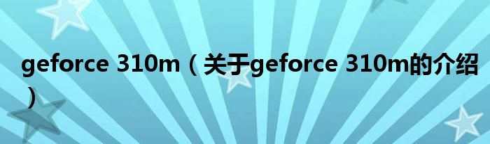 大家好,小新来为大家解答以上的问题。geforce 310m,关于geforce 310m的介绍很多人还不知道,现在让我们一起来看看吧!