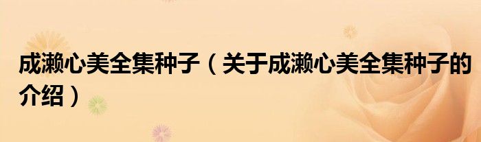 大家好,小新来为大家解答以上的问题。成濑心美全集种子,关于成濑心美全集种子的介绍很多人还不知道,现在让我们一起来看看吧!
