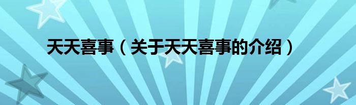 大家好,小新来为大家解答以上的问题。天天喜事,关于天天喜事的介绍很多人还不知道,现在让我们一起来看看吧!