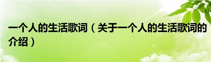 大家好,小新来为大家解答以上的问题。一个人的生活歌词,关于一个人的生活歌词的介绍很多人还不知道,现在让我们一起来看看吧!1、一个人的生活。2、作词是谭小雨。3、作曲是谭小雨。本文到此结束,希望对大家有所帮助。