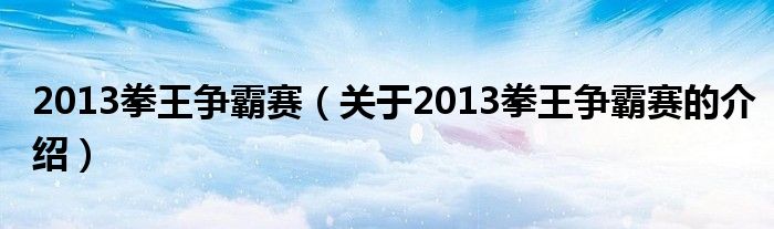 大家好,小新来为大家解答以上的问题。2013拳王争霸赛,关于2013拳王争霸赛的介绍很多人还不知道,现在让我们一起来看看吧!
