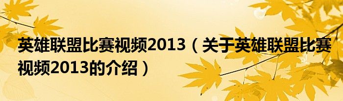 大家好,小新来为大家解答以上的问题。英雄联盟比赛视频2013,关于英雄联盟比赛视频2013的介绍很多人还不知道,现在让我们一起来看看吧!